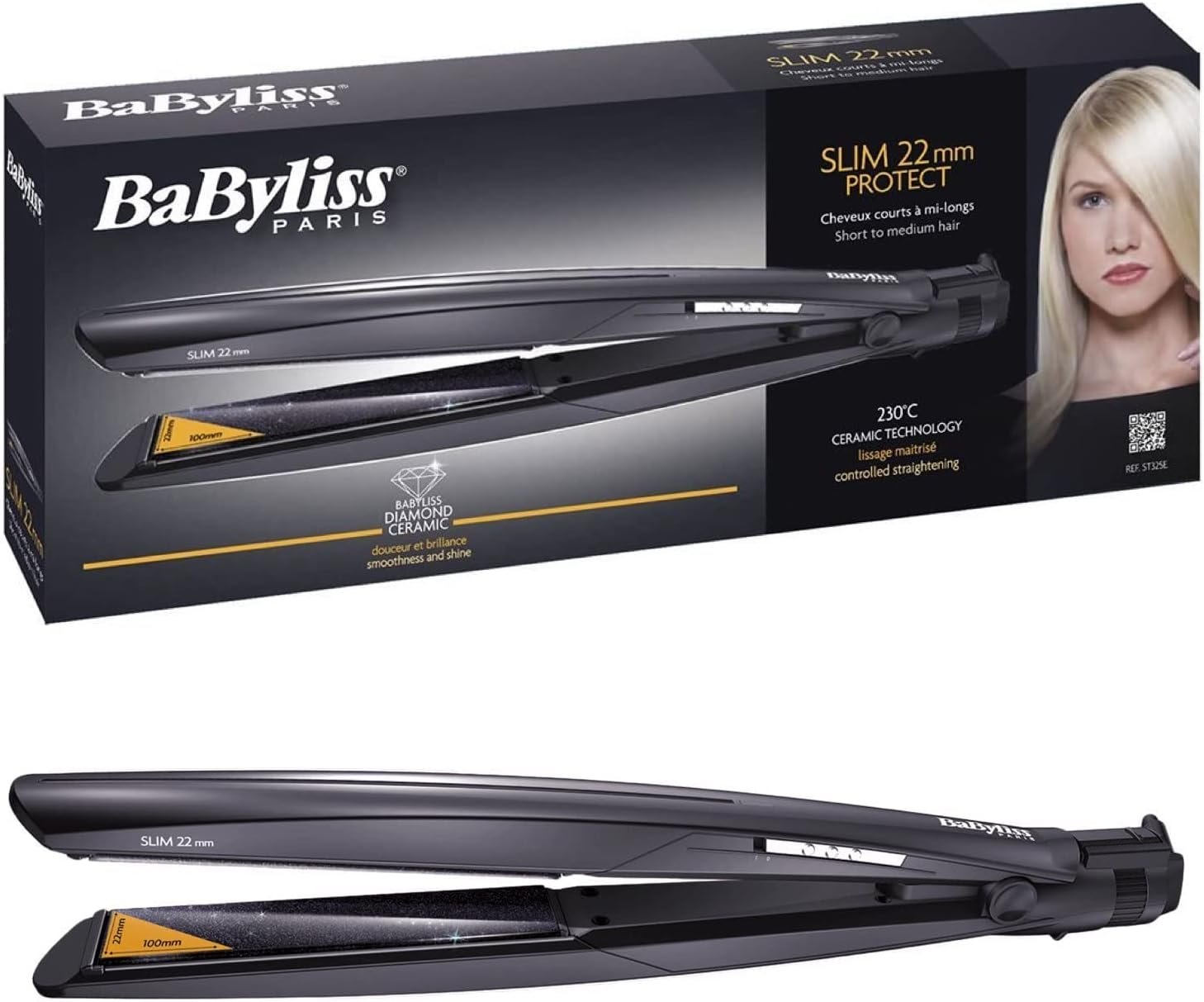 BaByliss Hair Straightener ceramic coated plates 22mm max temperature 230°C, 33W (ST325E)
