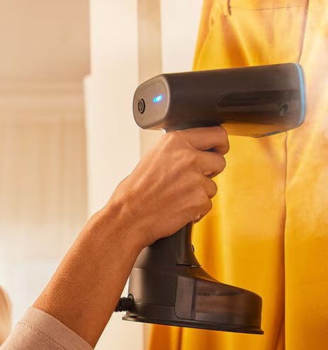 Braun handheld steam iron is designed to provide a smooth and fast ironing experience. It heats up in just 45 seconds and allows vertical and horizontal ironing for easy ironing of hanging or flat-ironed garments. It features a detachable 150ml water tank with an anti-drip system and an additional ironing brush for optimal ironing on different fabrics. A practical and elegant design in blue.